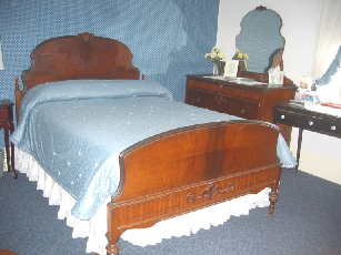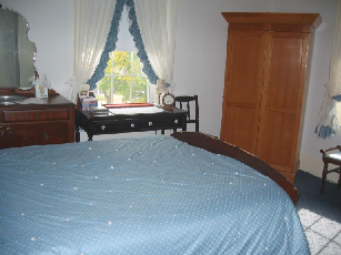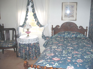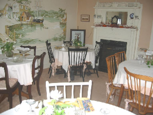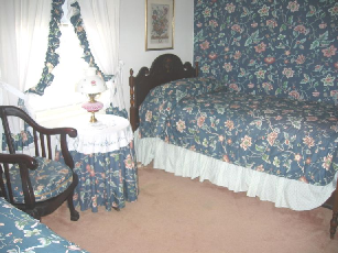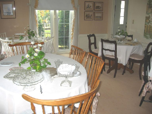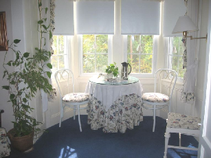 Rooms The dining area on the first floor. The first-floor bedroom with private bath and sitting area. The second floor twin bedroom. The second floor blue room.